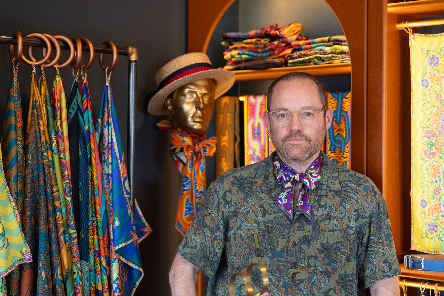 Luxury accessories and print made in the UK. Including pocket squares, silk scarves, neckerchiefs, cashmere stoles, silk shirts and more. Meet the artist »