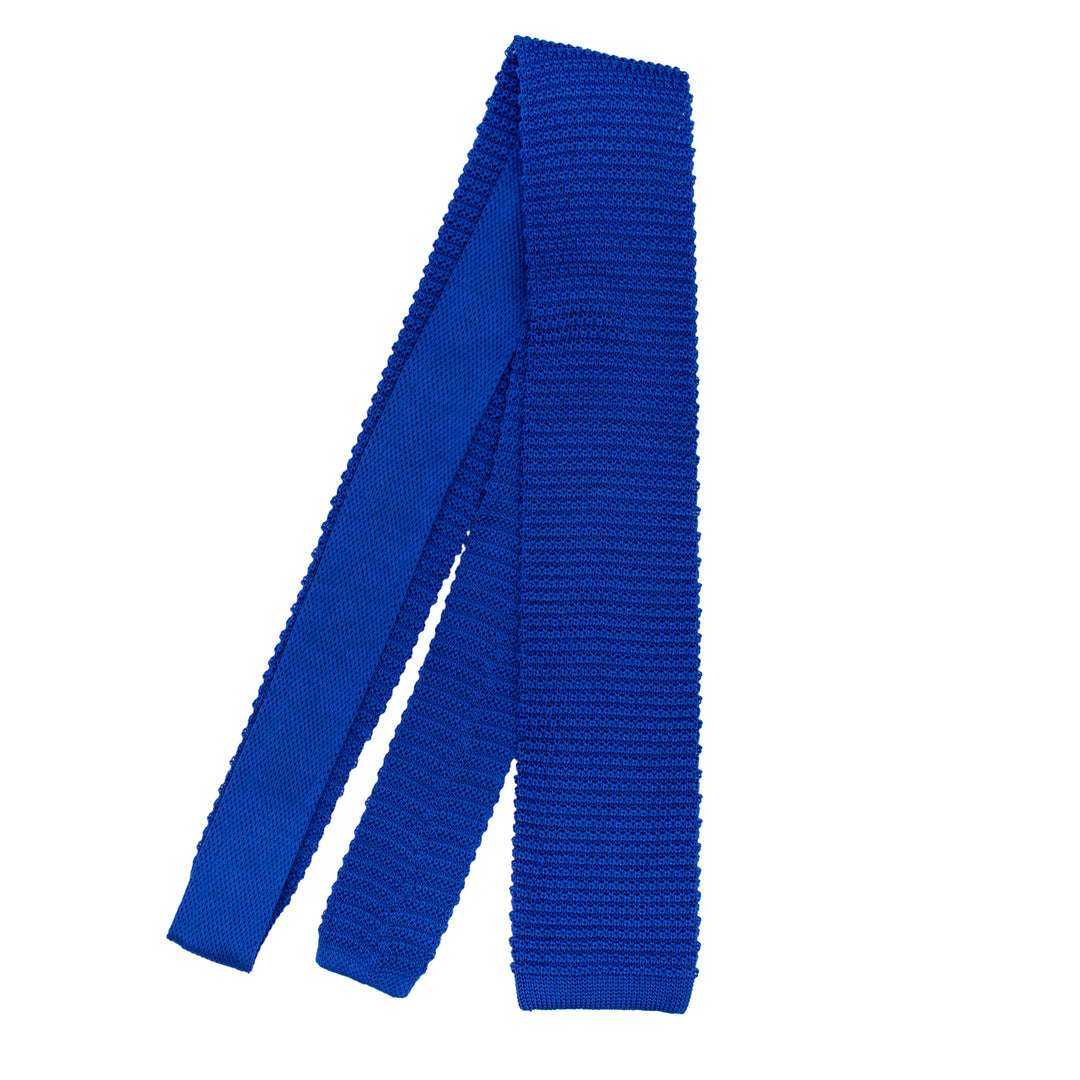 This electric blue knitted silk tie features a sleek square tip and adds a touch of texture and sophistication to any outfit.