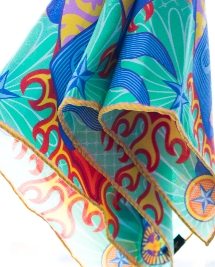 Heart and Dagger tattoo inspired pocket square in tutti frutti