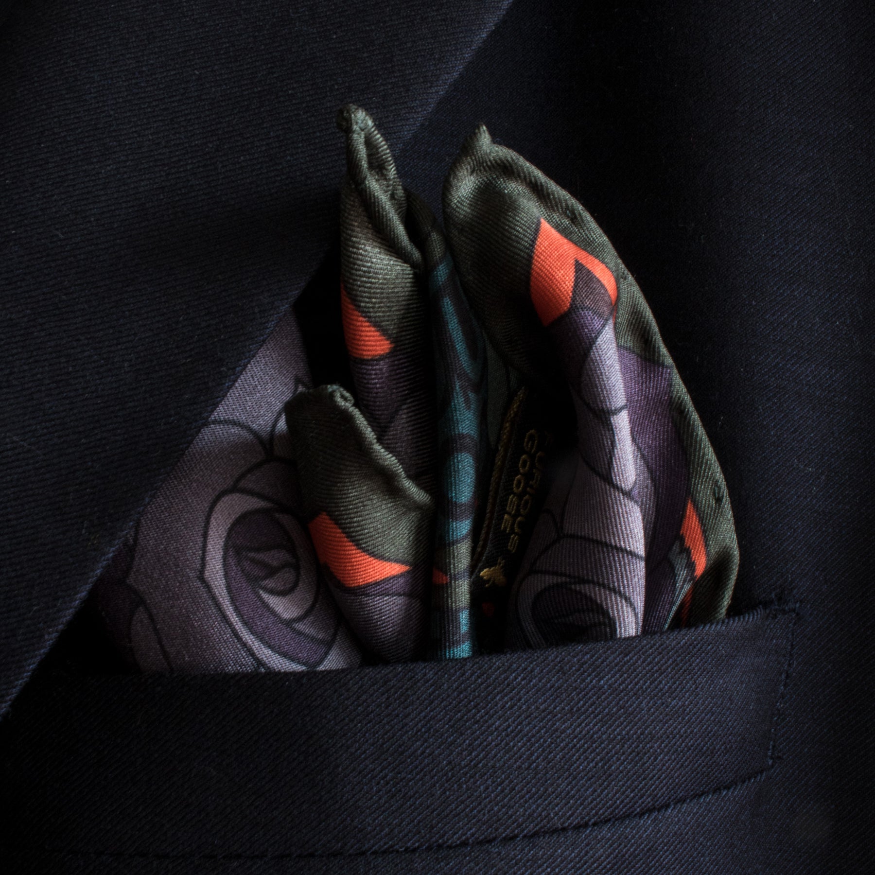 Folded silk pocket square Guns and Roses | Made in England | Furious Goose