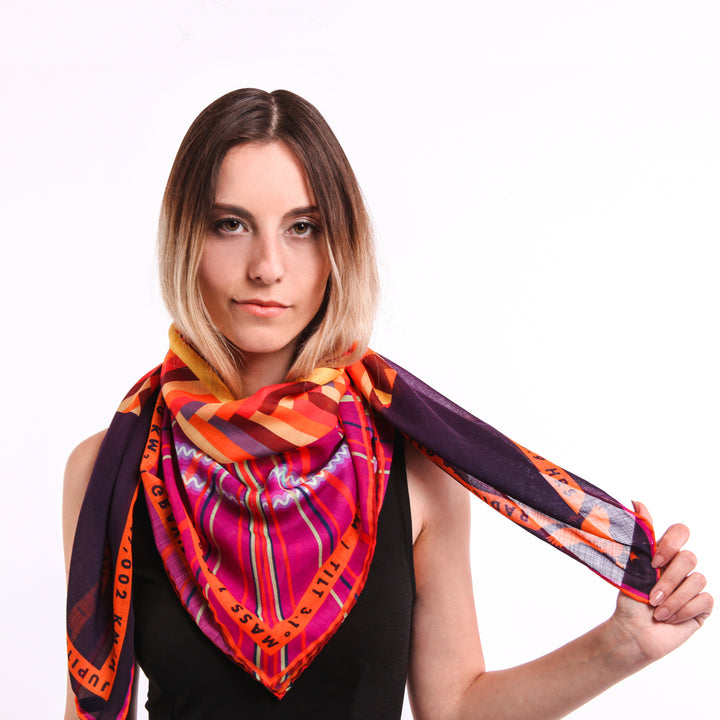 A bright and beautiful luxury scarf inspired by the raw power of Jupiter, the planet that rules the Solar System
