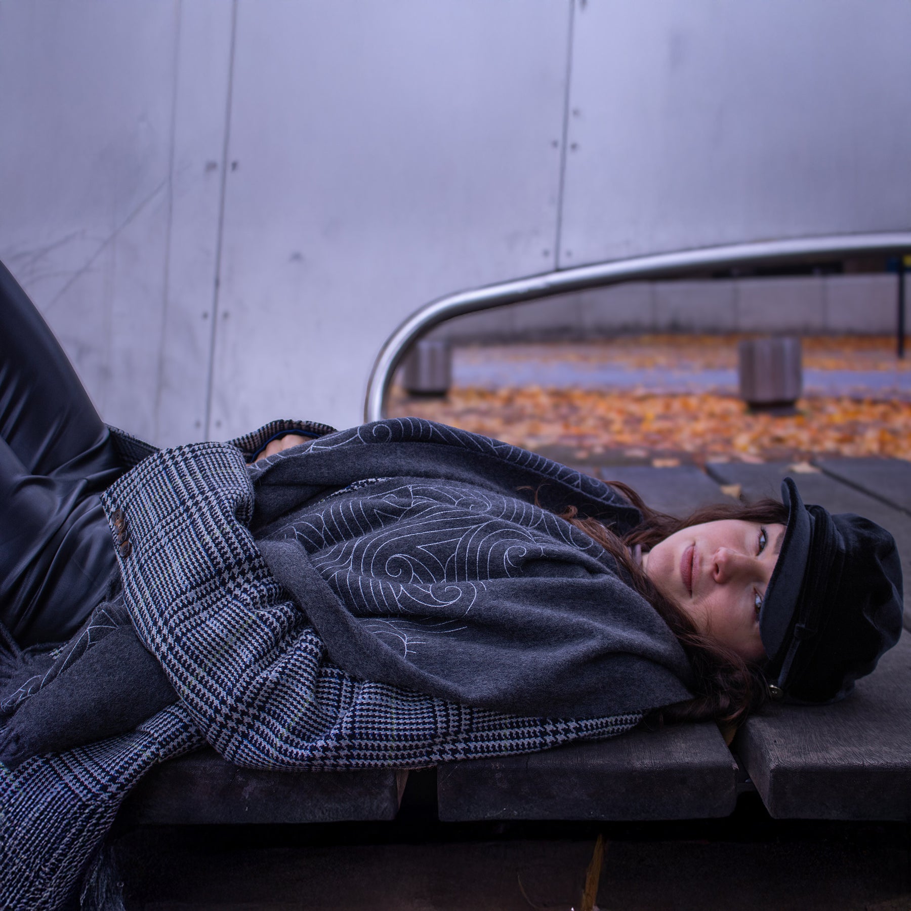 Slate Grey Cashmere Stole with Metallic Screen Printed pattern inspired by the Thames | Made in England | Furious Goose